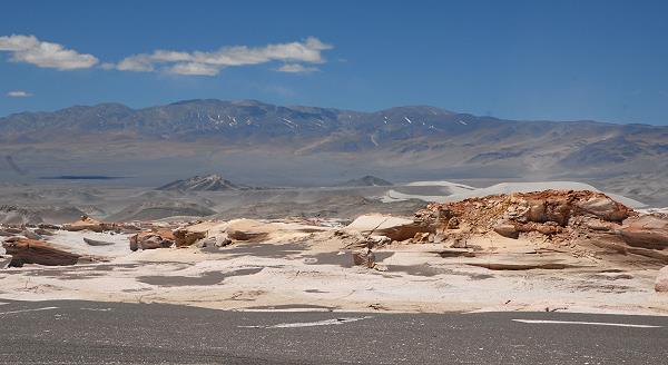 Nachdem wir den ersten und durchaus beeindruckenden Teil unserer Fahrstrecke von Fiambalá über Mesada de Zárate durch die Cordillera de San Buenaventura bis zum Pass erreicht hatten, bot sich ein fantastischer Anblick auf Vulkane. Wir hatten wieder die Puna Catamarqueña erreicht, deren Landschaft wir am Paso de San Francisco ja schon am Vortag bewundern konnten. Eine traumhafte Landschaft mit der höchsten Dichte an Vulkanen in der Welt. Es sollen um die 250 sein.