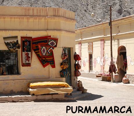 Das kleine, indianisch geprägte Dorf zählt nur knapp über 2.000 Einwohner und liegt auf einer Höhe von 2.206 Metern über dem Meeresspiegel. Purma bedeutet Wüste und marca Gegend. Am nördlichen Ortsrand fließt der Río Purmamarca. Von der Hauptstraße aus nur von einer Stelle ein gutes Stück jenseits des Ortes einsehbar liegt hinter dem Cerro de los Siete Colores das Farbenprächtige Valle Colorado, welces am unteren Ende die bekannte farbige Bergformation bildet, für die Purmamarca bekannt geworden ist. Purmamarca war bereits ein alter Rastplatz auf dem Camino del Inca, bevor die Spanier kamen. Die offizielle spanische Ortsgründung erfolgte erst im 17. Jahrhundert. Ein Großteil seines Charmes hat Purmamarca der Stadtplanung zu verdanken. Die Häuser werden hier bis heute aus Lehmziegeln gebaut, wie nach traditionellem Vorbild von Generation zu Generation weiter. Ursprünglich wegen der guten Isolation verwendet, dient der Lehm heute auch dazu, das Erscheinungsbild der Dörfer zu erhalten.