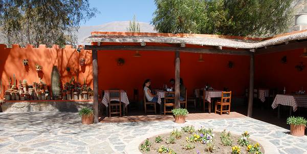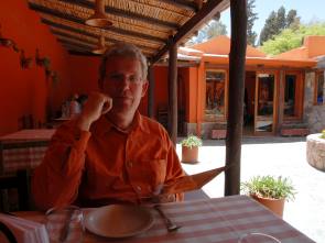 An der Plaza haben wir im gemütlichen Restaurant La Posta im sonnigen Innenhof eine Kleinigkeit gegessen, siehe Fotos unten, und danach dann auf dem Markt ein paar schöne, warme Schals aus Alpaka und Guanakowolle gekauft. Da die Konkurrenz hier sehr groß ist gibt es niedrige Festpreise. Handeln ist kaum möglich, aber so ein warmer Schal kostete 2009 auch nur 20 Pesos. Die Geschäfte sind ein wenig teurer, bieten aber zum Teil eine schöne Auswahl an Kunsthandwerk, das man nicht überall sieht. Es lohnt sich also, zum Einkaufen ins touristische Purmamarca zu kommen.