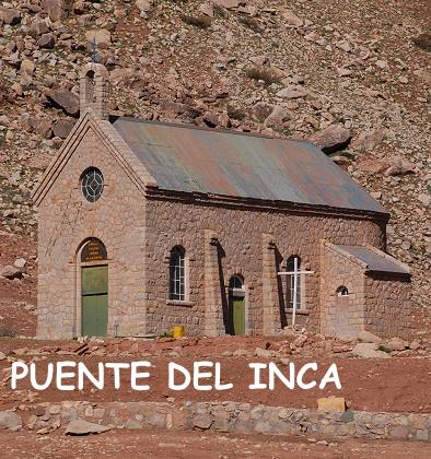 Die winzige Ortschaft "Puente del Inca" liegt 2.719 Meter über dem Meer und ist eigentlich nur wegen der Brücke der Inkas bekannt, einem Natursteinbogen über dem Río Las Cuevas Manantiales. Dieser Bogen wurde natürlich nicht von den Inkas erbaut, sondern entstand durch natürliche Erosion. Nur die falsche Annahme, die Inkas seien so weit nach Süden vorgedrungen, führte zu dieser etwas kruden Namensgebung. Ausser Touristen wird der Ort noch von vielen Soldaten besucht, denn auf der andern Seite der Ruta 7 sind Kasernen der argentinischen Bergjäger.