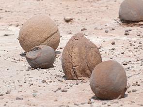 Eine Menge Steinkugeln liegen hier auf einer flachen Ebene herum, in Größen bis zu 30cm Durchmesser. Einige sind kugelrund, andere in der Mitte auseinandergebrochen. Da auch hier eine weiße Steinbegrenzung ist, kommt man nicht näher heran. Diese runden Kugeln, eine Laune der Natur, waren einst ein beliebtes Souvenir und wurden gerne geklaut. Daher sind alle Kugeln die in der näheren Umgebung gefunden wurden an dieser Stelle von den Rangern zusammengetragen worden. So kann man sie und die Besucher besser beaufsichtigen. Warum solche Kuller nur hier vorkommen und wie sie entstanden sind, haben wir auf Grund mangelnder Sprachkenntnisse nicht ganz verstanden. Im Museum gibt es Schautafeln zu dem Thema, allerdings auch nur auf spanisch.