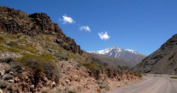 Von der Abzweigung unten bei Las Flores aus sind es nur es noch 90 Kilometer und 3.000 Meter Höhendifferenz bis zum Paso de Agua Negra. Wir fuhren gut 20 Kilometer durch die eher öde anmutende schiefe Ebene, allerdings hat man hier die schöne Bergkette immer vor Augen. Rechts und links bis zum Horizont erstrecken dich die imposanten Schneeriesen.