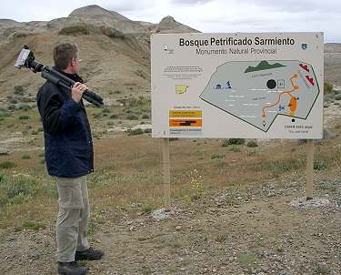 Den versteinerten Wald in der Nähe von Sarmiento erreicht über eine 38 Kilometer lange Schotterpiste. Es gibt keine öffentlichen Verkehrsmittel. Nur in der Hochsaison vom 15. Dezember bis zum 15. März fährt täglich um 10:45 Uhr und um 15:45 Uhr ein Minivan vom Tourist Office, Av. Reg. Inf. Mecanizada 25. Tel: 489-8220, ab. Ausserhalb der Hochsaison muss man sich ein Taxi nehmen oder fährt, wie wir, mit dem eigenen Auto hin.