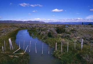 Schließlich sind rechts und links nur noch Zäune, Weiden und Schwemmland mit kleinen Seen. Ausser Schafen und Kühen sieht man viele Wasservögel am Wegrand. Vor allem Enten, Kiebitze, Schwäne und Magellan-Gänse. Im November, also im Frühling, präsentierte sich die Landschaft blühend und voller Leben.