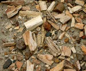 Immer wieder muss man die Splitter und Stämme anfassen, um sich zu vergewissern das sie wirklich aus Stein sind. So echt sieht das Holz auch nach 75 Millionen Jahren aus. Datiert wird das Holz in die Paleozoische Epoche (Frühes Terziär).