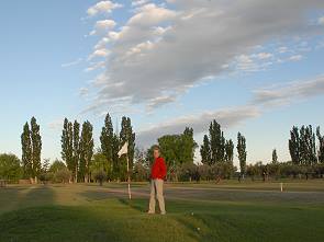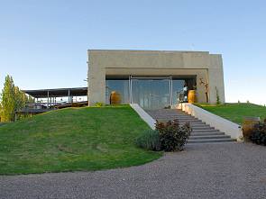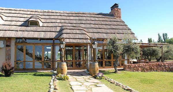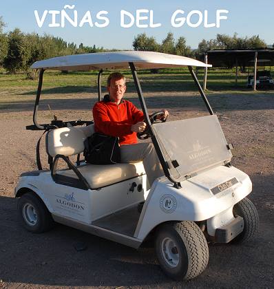 Rund um das Restaurant befindet sich der 9-Loch Golfplatz. Das hat zum Vorteil, dass für die Gäste hier Golfcarts kostenlos zur Verfügung stehen. Damit kann man mit 20 km/h durch die Weinfelder brettern, die paar hundert Meter von der Lodge zum Restaurant zurücklegen oder die moderne Bodega besuchen. Natürlich kann man das auch alles zu Fuß machen, aber mit Golfkarre macht es mehr Spaß. Für die kühlen Abende kann man sich im Aufenthaltsraum dicke Wollponchos vom Haken nehmen, die gegen den Fahrtwind schützen.