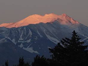 Wer hier wohnt, der sollte sehr früh aufstehen. Wir haben es sehr genossen, kurz vor der Dämmerung die Flügeltüren zur Veranda hin ganz zu öffnen. So kann man, noch gemütlich im warmen Bett liegend, von dort aus den Sonnenaufgang beobachten. Kissen in den Rücken und einfach nur die Aussicht und Ruhe genießen. Das ist hier wirklich etwas ganz Besonderes, wenn sich die Spitzen der Schneeberge im ersten Morgenlicht rosa färben und als einzige Geräusche die Vögel ihr Konzert beginnen. Ganz unten ist eine Bildfolge vom Sonnenaufgang zu sehen.