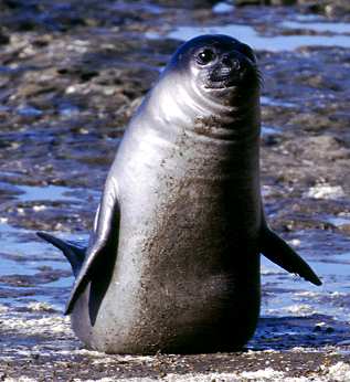An einem schlafenden und grunzenden Bullen vorbeizugehen ist schon ein wenig aufregend, auch wenn die dort liegenden Exemplare noch jung und relativ klein sind. Doch nach einigen aufregenden Minuten hatten wir diesen Abschnitt hinter uns gebracht und näheren uns auf etwa 20 Meter der Gruppe von Jährlingen. Dann hockten wir uns ruhig hin und die Kleinen mit ihren Kulleraugen beobachteten uns ebenso neugierig. Einige robbten sogar näher und kamen so bis auf ca. 5 Meter an uns heran. Teilweise hatten wir den Eindruck, sie würden dabei eine Art Wettstreit austragen, wer sich aus der Gruppe am weitesten an uns herantrauen würde.