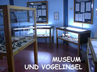 Leider ist die Insel so weit weg, das selbst mit gutem Fernglas die Tiere nur als kleine, weiße Pünktchen zu erkennen sind. Dafür kann man sich in einem Mini-Museum wenigstens windgeschützt einige Fotos von den dort lebenden Seeschwalben, Austernfischern, Sturmvögeln, Kormoranen und diversen Möwenarten anschauen.