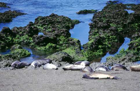 Ein kurzer Pfad führt zu dem Aussichtspunkt mit einem Unterstand hoch auf den Klippen. Unten tummeln sich einige Seelöwen und See-Elefanten an der Wasserkante. Bei Ebbe kommen hier die typischen Gezeitenpools aus dem Wasser, die mit Algen bewachsen sind und Rinnen in Richtung Meer aufweisen. Vögel wie die schwarz-weißen Austernfischer streiten sich lautstark um Beute, die freiliegt wenn sich das Meer zurückzieht.