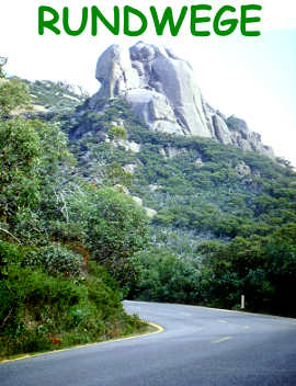 RUNDWEGEAbgesehen von der Day Visitor Area am Mount Buffalo Chalet führen noch einige weitere Wege über das Hochplateau. Eine asphaltierete Straße führt weiter bis fast zur höchsten Erhebung, The Horn, nur die letzten 2 Kilometer sind Schotterstraße.