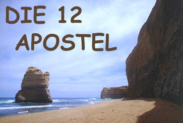 DIE 12 APOSTELEines der beliebstesten Fotomotive in Australien sind die 12 Apostel. Warum die einsam in der Brandung stehenden Felsen so genannt werden weiß ich nicht genau, 12 sind es eigentlich auch nicht mehr. Wind und Wellen haben diese bizarren Skulpturen erschaffen, es sind Reste von weichem Kalkgestein, das dem Tosen des Meeres nicht standhielt. Schroffe Säulen ragen unmittelbar vor dem Strand aus der Brandung auf, einige von Ihnen sind über 35 Meter hoch. Hier sind nun die obligatorischen Touribilder auf meiner Seite, hundertfach fotografiert und ins Netz gestellt, aber immer wieder schön.