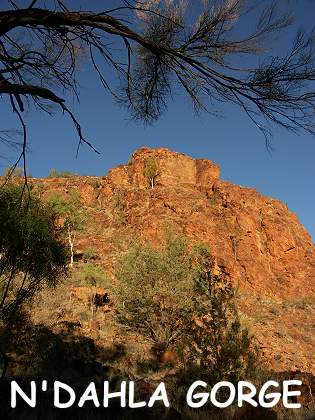Ungefähr in der Mitte der Schlucht bot ein Felsüberhang, der direkt am Wanderweg liegt, den Aborigines Schutz. Solche Stellen gibt es noch viele in der Schlucht, kein Wunder dass diese Region wichtig für die kulturelle Identität der lokalen Aborigines ist. Auch die Pflanzenwelt weist hier einige Besonderheiten auf, so findet man in der N'Dhala Gorge die seltene Hayes Wattle (Acacia undoolyana) und die White Cypress Pine (Callitricx glaucophylla).