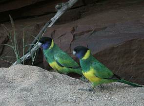 Der Weg in die Schlucht ist einfach zu begehen und führt vorbei an Felsen und Wasserlöchern voller Leben. Das Wasser zieht viele Tiere an, leider lag die Felswand schon im Schatten, als wir am Nachmittag ankamen. Man stapft durch den Sand des Trephina Creek und hört ein merkwürdiges Krächzen. So wurden wir auf eine Gruppe hübscher Western Ringnecks (Barnardius zonarius) aufmerksam, die zum Fressen und Trinken auf den sandigen Talgrund kamen. Wir machten eine Menge Fotos und beobachten die putzigen Tiere, dabei vergaßen wir fast die Zeit. Im Morgengrauen und in der Abenddämmerung kann man hier auch gut Wallabies beobachten.