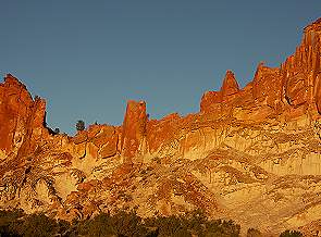 Zur Zeit des Sonnenuntergangs halten sich wohl die meisten Menschen hier auf, auch wenn die Zahl durchaus noch überschaubar ist. Es gibt eine Aussichtsplattform, dort stehen meist die Teilnehmer der Tour, die kurz nach Sonnuntergang wieder nach Alice Springs zurückfahren und die wenigen Camper, welche die Nacht vor Ort verbringen. Die Felsen leuchten wirklich wunderschön in einem ganz intensiven Rot und die Schatten werden ständig länger. Wenn die Sonne hinter dem Horizont verschwunden ist sollte man noch eine gute Viertelstunde warten, denn danach leuchten die Felsen noch einmal zartrosa auf. Dann wird es Zeit, sich ans warme Lagerfeuer zurückzuziehen.