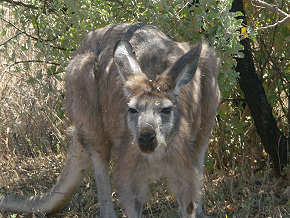 Hier gibt es zwar eine ganze Menge Stellplätze, als wir an einem Nachmittag im November kamen war allerdings weit und breit kein Mensch zu sehen. Nur die Fliegen und der Wind waren sehr lästig und so entschieden wir uns, noch einmal eine Nacht in der Brachina Gorge zu verbringen, um den Gelbfuß-Felsenkängerus mit der Kamera nachzustellen. Von der Lage her und der Platzaufteilung hat uns Koolamon besser gefallen, da es hier mehr alten Baumbestand gibt, allerdings sind auf dem Platz an den Aroona Ruins 2004 viele Bäume neu gepflanzt worden.