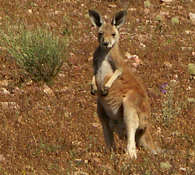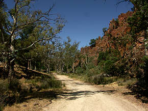 Hier wollten wir eigentlich wandern und auch übernachten, denn es gibt zahlreiche Campingmöglichkeiten. Aber da gerade Wochenende war störten uns die vielen Camper, einige davon mit lauten Motorcross-Motorrädern, doch sehr. Die Schlucht ist malerisch mit steilen, roten Felswänden und das scheue Gelbfuß-Felsenkängeru soll hier auch leben. Bei so viel Trubel war es aber eher unwahrscheinlich, das sich dieses scheue Wallaby blicken lässt.