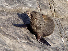 Je mehr man sich auf den Holzstegen der Küstenlinie nähert, um so näher kommt man an die New Zealand Fur Seals (Neuseeländische Pelzrobbe - Arctocephalus forsteri) heran, die hier auf den wellenumtosten Felsen gut zu beobachten sind. Sie gehören zur Familie der Ohrenrobben und ihr Lebensraum ist unregelmäßig im südlichen Ozean verteilt. Kolonien findet man sowohl auf der Süd- als auch Nordinsel von Neuseeland, auf einigen neuseeländischen subantarktischen Inseln, auf Macquarie Island, an der Südküste von Australien und vor Süd-Tasmanien.