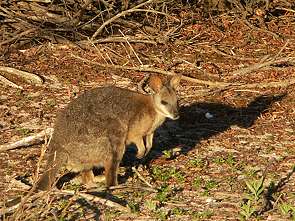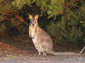 Campt man dagegen einsam und alleine in der Bucht von D´Estrees Bay, so hat man Mühe die Wallabies zu sehen. Wie überall kommen sie erst bei Dämmerung heraus und hüpfen weg, sobald man sich ihnen auf weniger als 20 Meter nähert. Dabei ist das Kangaroo-Island-Känguru eher langsam und hüpft weder so hoch noch so schnell wie seine Verwandten vom Festland.