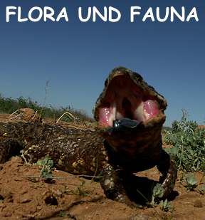 Auf der Rundfahrt haben wir im im Seebett des Lake Mungo einmal sogar einen großen Waran oder Goanna gesehen. Das Vieh war mit Schwanz fast 2 m lang, breit und schwer wie ein kleiner Alligator. Leider war er sehr scheu und viel zu schnell für meine lahme Reaktion mit der Kamera, und seine Pranken trommelten mächtig laut auf dem Sandboden, als er vor mir ins niedrige Buschwerk flüchtete.