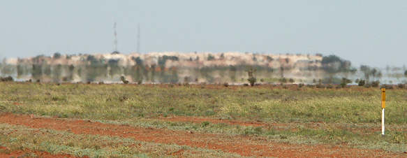 Nähert man sich dem Ort White Cliffs, dann versteht man den Namen. Die Abraumhalden der Opalfelder erkennt man schon von weitem, im flirrenden Licht des heißen Tages erscheint eine weiße Wand wie eine Fata Morgana, unten auf dem Foto wunderbar zu sehen.