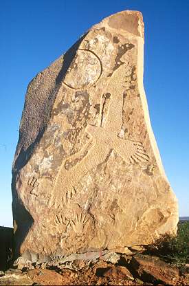 Eine sehr schöne Skluptur von Dr. Mahomad Mira aus Damaskus / Syrien: "The Bride". Sie leuchtet im Licht der untergehenden Sonne und zeigt die Symbole für Australien. Das Kreuz des Südens, ein Emu und ein Känguru. Andere Symbole stehen für die Aborigines und für die Stadt Broken Hill. Eine Hand ist zum Gruß erhoben.