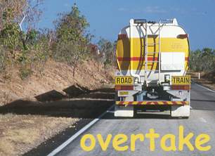 Overtaking a road train in the Outback