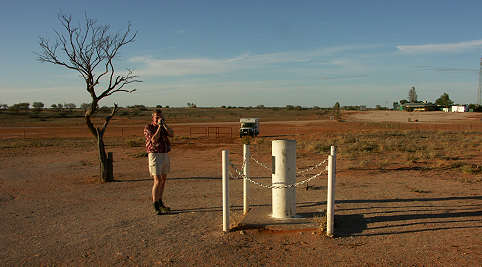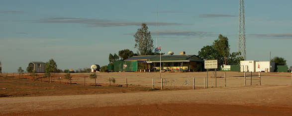 Warum der Store gerade hier mitten im Nirgendwo errichtet wurde? Weil sich nur knappe 100 m entfernt: der Cameron Corner Grenzstein befindet: hier ist einer von nur zwei Punkten des Kontinents, an dem drei Staatsgrenzen aufeinander treffen. Der andere Punkt liegt bei Border Cliffs zwischen South Australia, New South Wales und Victoria. Der Treffpunkt der Grenzen liegt aber mitten im Murray River und fällt somit als Treffpunkt aus.