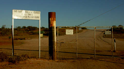 Direkt an der Grenze verläuft der berühmte Dog Fence, den man auf dem Weg in den Sturt National Park durchfahren muss. Hohe Strafen werden angedroht, wenn man die Tore nicht hinter sich schließt: 2004 waren es bis zu 10.000 AUD$. Dann verlässt man South Australia und befindet sich in New South Wales, und fährt noch ein wenig am Zaun entlang mit Blick auf Queensland auf der anderen Zaunseite.