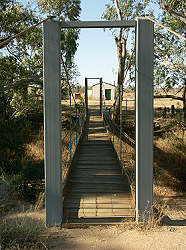 Die Männer mussten damals einen Graben, den Thompsons Creek, überqueren, um von ihren Quartieren zur Arbeitsstelle im Wollschuppen zu kommen. Dieser Creek war meist knochentrocken und man baute eine einfache Hängebrücke aus Holz und Stahldraht.