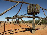 Hier sieht man ein seltenes Beispiel von Woll-Technologie. Die Vliese, die geschoren wurden, konnten hier gleich gereinigt werden. Der Transport von Wollballen war sehr teuer, damals erfolgte er noch mit Ochsenkarren und Kamelen. Eine Reduzierung des Gewichtes durch vorherige Reinigung sparte eine Menge an Kosten und maximierte so den Gewinn - Dreck, Fett und Sand machten etwa die Hälfte des Gewichts aus und wurden hier von der Wolle getrennt.