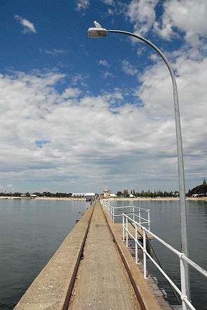 Gegen einen Eintritt von 2,50 Dollar kann man auf diesem Pier spazieren gehen. Die überall abgebildete kleine Bimmelbahn auf dem Pier fährt nicht mehr, der Verkehr wurde 2005 auf Grund des Alters der Jetty eingestellt. Dafür stolpert man aber noch beim spazieren gehen über die nicht entfernten Schienen.