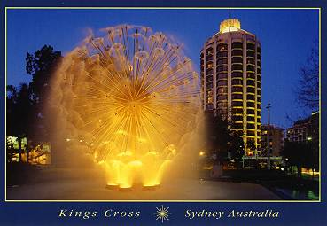 In Kings Cross haben wir gewohnt, genauer im Gazeebo Hotel, dessen runder Turm auf dem unteren Bild zu sehen ist. Davor befindet sich das Wahrzeichen von Kings Cross, der El Alamein Fountain. Nur Nachts wirkt der Brunnen wie verzaubert, am Tag wirkt er unscheinbar im Zentrum von Schmutz und herumlungernden Gestalten. Gar so heruntergekommen wie oft beschrieben ist Kings Cross allerdings nicht, mit einem Slum oder einem reinen Vergnügungsviertel o.ä. nicht zu vergleichen, allerdings lebt hier die Straßenprostitution, was sehr selten ist in Australien.