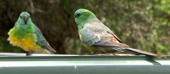 In vielen Buchhandlungen in Australien kann man dicke Bestimmungsbücher kaufen, mit deren Hilfe sich die zahlreichen bunten Gesellen, die Papageien, Loris und Kakadus, zuordnen lassen. Ohne ein solches Buch, das zu schleppen schon eine Last sein kann, ist der Laie kaum in der Lage, die zahlreichen Arten auseinander zu halten. Schon nach wenigen Minuten neugierigen Blätterns haben wir es manchmal aufgegeben. Statt zwei oder drei verschiedenen "gelb-grünen" Lorikets und Parrots hat man hier die Wahl zwischen 20 oder 30 verschiedenen Sorten. Oft ist eine Zuordnung nur aus dem landschaftlichen Kontext möglich.