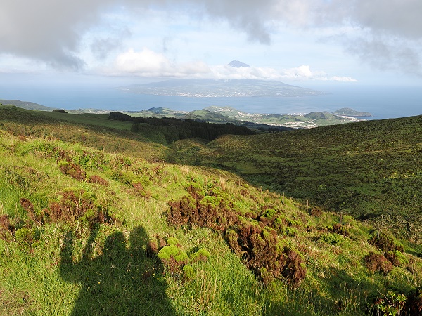 Bei der Rückfahrt bergab war das Panorama, das sich hier vom nahezu höchsten Punkt der Insel bot, umwerfend. Nicht nur die Caldera war wolkenfrei, auch der benachbarte Vulkan Pico auf der gleichnamigen und bereits von uns besuchten Nachbarinsel zeigte sich endlich mal in voller Schönheit.