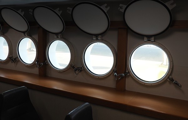 Diese Fähre ist viel größer und hatte auch einige Autos mit an Bord. Unter Deck hat der Passagierbereich zwei Etagen. Auf dem oberen Deck gibt es große Fenster, unten nur große Bullaugen, die sogar verriegelbare Abdeckungen hatten als Schutz bei Sturm. Insgesamt waren wir etwa zwei Stunden unterwegs und konnten während der Fahrt sogar Delfine und Gelbschnabel-Sturmtaucher beobachten.