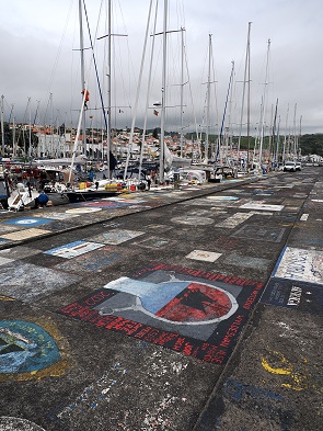 Die Marina da Horta, die von dieser bemalten Kaimauer umgeben ist, bietet Platz für etwa 300 Boote. Sie liegen hier gut geschützt durch Wellenbrecher. Es gibt moderne Versorgungseinrichtungen mit Strom, Wasser, Internet sowie passende Werkstätten. Auch Zoll- und Einreiseformalitäten für internationale Boote können direkt im Hafen erledigt werden.