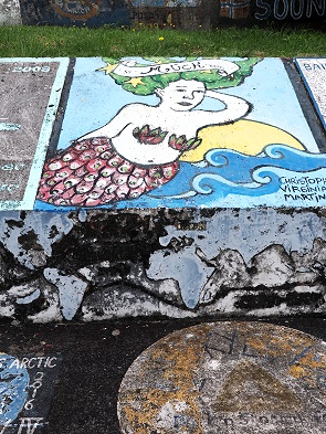 Es lohnt sich auf jeden Fall, dort vorbeizuschlendern. Bei unserem Besuch waren gleich fünf verschiedene Segler damit beschäftigt, neue Bilder zu malen. Es ist gar nicht so einfach, hier noch ein freies Plätzchen zu finden, einige weichen schon auf den Fußboden aus.