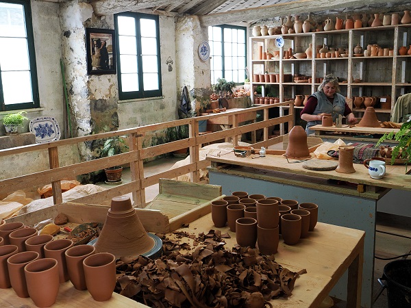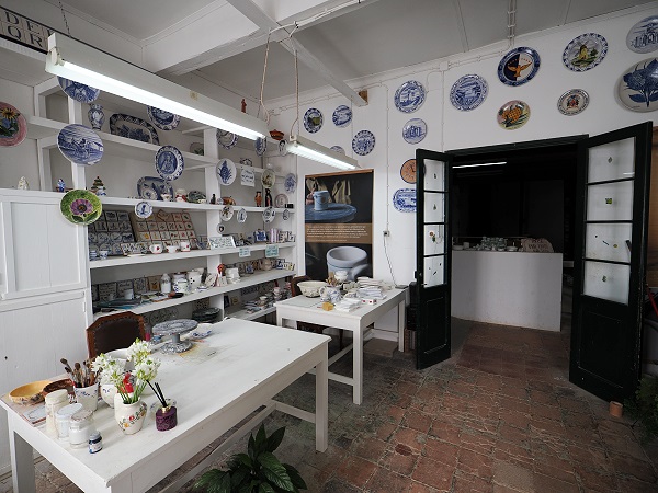 Die Fabrik produziert überwiegend drehgebranntes Geschirr und handgefertigte Fliesen mit den charakteristischen Dekoren, bei denen Blau die dominierende Farbe ist. Interessant, das sie erst in Altrosa aufgetragen wird und dann erst beim Brennen ihre charakteristische Blaufärbung bekömmt.