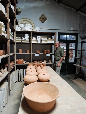 Alles wurde seit dem ersten Tag von Hand gemacht, wobei der Ton in Kugeln mit Wasser aufgeweicht und in Tanks mit den Füßen geknetet wurde. Die Unreinheiten wurden mit einem Sieb herausgefiltert und der Schlamm dann in andere Tanks weitergeleitet, wo er weiter verfeinert wurde. Dann ging man zur Trocknungsphase über, in der der Ton gegen die Ziegelmauern im Hof geworfen wurde, so onnte fast das gesamte Wasser aus dem Material entfernt werden.