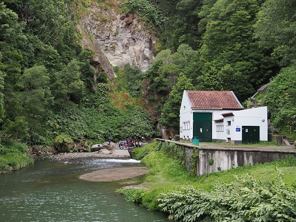 Ich wollte nur ein paar Bilder zeigen, da dieser Wasserfall ja immer überall als absolutes Highlight der Insel gepriesen wird. Er ist auch wirklich schön und hatte hinreichend Wasser. Mehr Wasser von einem Staubecken weiter oben bekam aber die hier in einem kleinen Haus kurz vor dem Wasserfall aufgebaute Turbine Nova Central des Elektrizitätswerkes. Dort treibt seit 2006 eine neue Turbine aus einem Wasser-Gefälle von 137,4m einen Generator mit 680kW elektrischer Leistung. Weiter oben am Berg, am Wanderweg zu den schon erwähnten Caldeiras da Ribeira Grande, kommt man noch an dem alten, stillgelegten Wasserkraftwerk Central Hidroelétrica da Fajã do Redondo von 1927 vorbei, oberhalb davon führt der Weg entlang der alten Druckwasserleitung, teilweise spektakulär anzusehen. Dort sind wir aber nicht mehr vorbei, da wir das alte und das neue Kraftwerk für ein und dasselbe Gebäude gehalten haben.