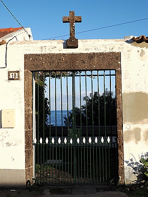 Von dort kann man auch auf die Grundstücke in Privatbesitz schauen, so sieht man einen knallroten Pavillion hinter dem Kloster und auch das Grundstück nebenan ist riesig, mit Tennisplatz und Sportplatz. Leute mit viel Geld, denen hier in Caloura gleich mehrere Grundstücke gehören. In der gesamten Region sind viele luxuriöse Sommerresidenzen zu finden, die von vielen Ausländern als Zweitwohnsitz vor allem im Sommer genutzt werden. Hier findet man auch viele zurückgekehrte Auswanderer, die vor allem in den Vereinigten Staaten viel Geld verdient haben.