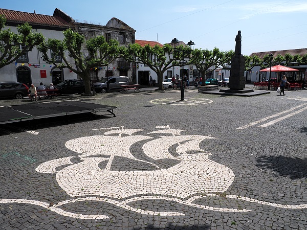 Nach dem Besuch holten wir uns am Kiosk gegenüber ein Eis und setzen uns in den kleinen Stadtpark. Daran angrenzend befindet sich auch das Rathaus. Obwohl die Gemeinde Vila Franca do Campo bereits im 15. Jahrhundert gegründet wurde, stammt das heutige Gebäude aus dem Ende des 18. Jahrhunderts. Es hat hat schlichte Linien, eine Außentreppe und einen Glockenturm und wirkt auf den ersten Blick fast wie eine dritte Kirche. Südlich des Gebäudes befand sich einst ein Pranger.
