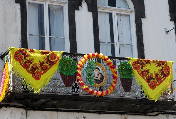 Von hier aus gingen wir weiter durch mit Fähnchen und kleinen Altären geschmückte Straßen runter zur Promenade und zum Hafen. Auch wenn es weiter oben in den Bergen den ganzen Tag stark bewölkt war, hier kam noch einmal gegen Abend die Sonne heraus.