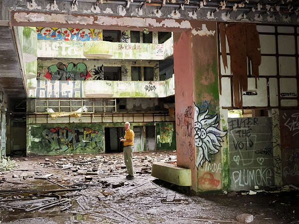 Neugierige Besucher und Fotografen schätzen die mystische Atmosphäre dieses Lost Place, vor allem die atemberaubende Aussicht von der verlassenen Dachterrasse. Im Inneren klingt es hohl und wenn man vorbei geht, hört man die Besucher innen jauchzen und rufen. Schilder warnen vor unbefugtem Betreten, aber da hält sich niemand dran. Der Zutritt ist offiziell nicht erlaubt und kann gefährlich sein, denn es gibt offene Schächte und keine Absperrungen an einigen Treppenhäusern. Einsturzgefährdet schien uns dieser riesige Betonklotz aber nicht zu sein, die Warnschilder sind eher allgemein gehalten.