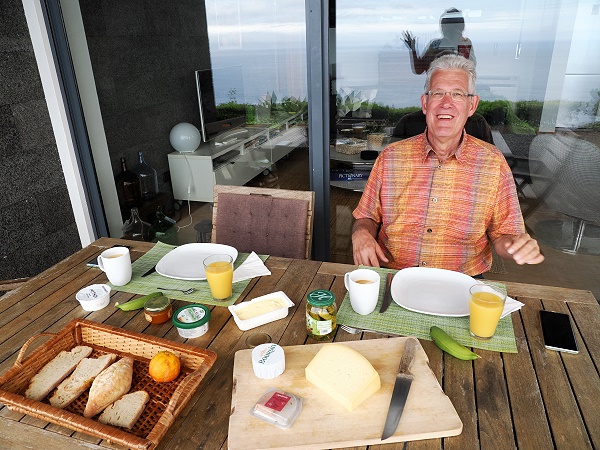 Hier wird in der offenen Küche mit authentischen Aromen und einheimischen Zutaten gekocht. Jedes Gericht erzählt eine Geschichte, die auf dem lokalen gastronomischen Erbe basiert, über Generationen weitergegeben und von den einzigartigen geografischen Bedingungen beeinflusst wurde. Das Menü kostet 90 € pro Person, am Ende war noch ein entspanntes Schwätzchen drin. Hektik gibt es hier nicht, die Platzanzahl ist überschaubar. Demnächst wird noch vermietet, an dieser Stelle der Insel hat man zwar einen schönen Blick auf das Meer, aber wir hatten hier oft Nebel oder Regen, während am Ferienhaus in Terra Alta die Sonne schien.