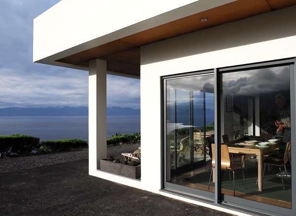 Nebenan in Richtung Osten liegt ein fast baugleiches Haus, das der Schwester der Vermieterin gehört. Beides sind moderne Häuser mit strengen Linien, aber gebaut mit Verwendung von lokalem Lavastein außen und im Innenbereich, und sie haben eine großartige Lage. Die beiden Familien verbringen hier gemeinsam den Sommerurlaub, meist im August. Die restliche Zeit wird das Nebenhaus jedoch nicht vermietet, was den Gästen ein Höchstmaß an Privatsphäre für das vordere Haus bietet.