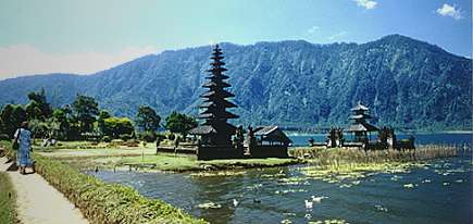 BERGLANDFährt man von den fruchtbaren Tälern und heißen Küsten im Norden aus in die Bergwelt Balis westlich des Gunung Catur, ist das wie eine Fahrt in die Sommerfrische. Die drei Bezirke Buleleng, Badung und Tabanan stoßen hier in den Bergen im Zentrum Balis zusammen. Drei Seen liegen als Wasserreservoir dicht nebeneinander: Der Bratan-See, der Buyan-See und der Tamblingan-See. Hier oben ist es herrlich erfrischend und kühl, man atmet klare Bergluft, kein Wunder, das auch die Einheimischen dies besonders zu schätzen wissen und vor allem am Wochenende hier herauf kommen.