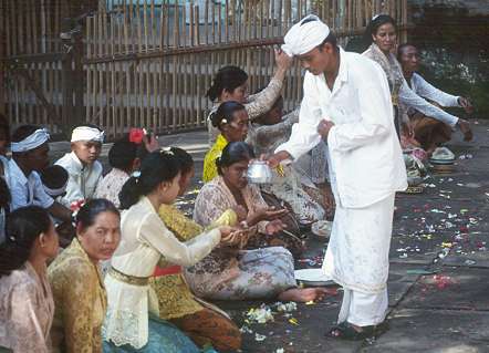 TEMPELFESTOdalan heißt das Fest zum Jahrestag der Tempelweihe, dann besuchen die Götter diesen Ort. Es findet entweder alle 210 oder alle 360 Tage statt. Der Tempel wird rituell gereinigt, der Eingang mit Schirmchen verziert, die steinernen Figuren werden mit Tüchern geschmückt, man vertreibt gemeinsam die bösen Geister und festigt mit diesen Aktionen gleichzeitig die Bande der Dorfgemeinschaft. Am frühen Morgen findet meist ein Hahnenkampf statt.