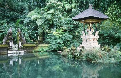 Der Pura Gunung Kawi sollte nicht mit dem gleichnamigen, großen Felsengräbern der Könige bei Tampaksiring verwechselt werden. Hier, nahe der Hauptstraße von Sebatu, liegt ein kleiner Tempel mit einigen Wasserbecken in einem tiefen, dicht bewachsenen Tal. Schon vom erhöhten Standpunkt von der Straße aus hat man einen guten Blick über die Anlage. Nachmittags kommen hier die Touristenbusse an, kommt man aber am Morgen, so ist man fast alleine und die vielen Shops auf der gegenüberliegen Straßenseite sowie die Kasse für den Eintritt sind noch gar nicht besetzt. Nur so kann man diesen bezaubernden, grünen Ort in Ruhe genießen. Ein Sarong ist natürlich Pflicht, und mangels Kassenpersonal sollte man den Eintritt beim Gehen in der Spendenbox deponieren.